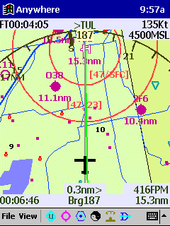 Anywhere Map tm Superior Panel Technology reviewed the available portable GPS moving maps that are on the market and decided that Anywhere Map tm system by Control Vision offers the best product and the best value for the dollar on the market. It represents an investment that is as valuable out of the cockpit as it is in the cockpit. This is the PDA and map software that the owners of SPT fly with and rave about. This is the moving map that we recommend to everyone. Written by pilots, it is packed with unique features, including continuous DME readout to nearby airports, a detailed aeronautical map with the clarity of color, the convenience of color, readable in bright sunlight and the security of Anywhere Map's exclusive "cones of safety" display. Why buy from Superior Panel Technology? We offer the best price available for the GPS bundle and you can obtain our quality GPS mount at an unheard of price. Click on the "Hot Deal of the Month" link for more information.